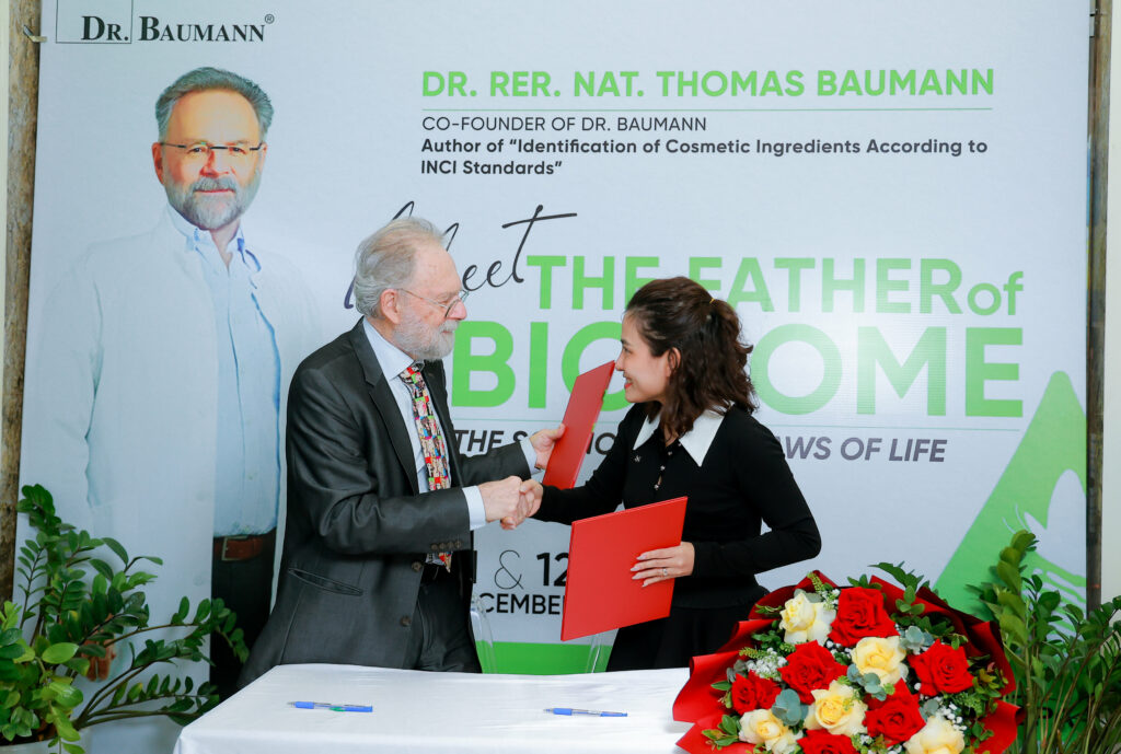Revenons à notre séminaire au Vietnam : outre l’histoire de l’entreprise, le contenu était principalement axé sur l’argument principal de Dr. Baumann : une peau saine ne peut être saine à long terme que grâce à des composants actifs identiques à ceux de la peau elle-même.